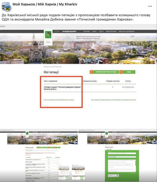 До Харківської міської ради подано петицію з вимогою позбавити колишнього голову ОДА та колишнього народного депутата Михайла Добкіна звання «Почесний громадянин Харкова».
