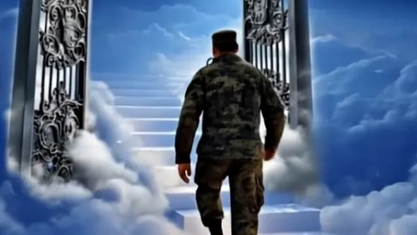 Солдат проходить крізь райські ворота в одному відео, створеному штучним інтелектом (Зображення: Vkvideo/Офіційне прощальне відео)